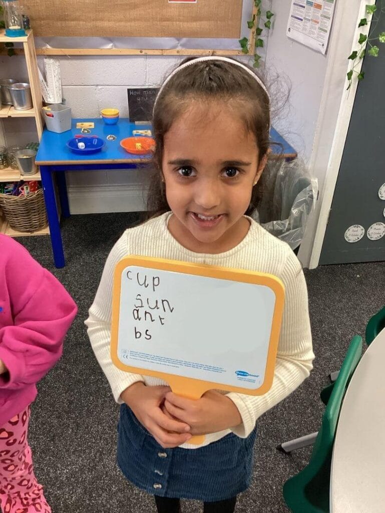 Alongside that, the children have continued their learning in all areas of the curriculum. In maths, the children have been exploring the concept of circles and triangles and how they compare to four-sided shapes. The children have been really good at spotting these shapes in the environment too and even got excited to see the shape of the ceiling tiles in the dining hall! They have extended their learning of smaller numbers and investigated how to work out one more and one less than a given number. In phonics the children have continued to learn new sounds, apply these in their writing and have started to read sentences too. We couldn’t be more proud of how hard they are all working.